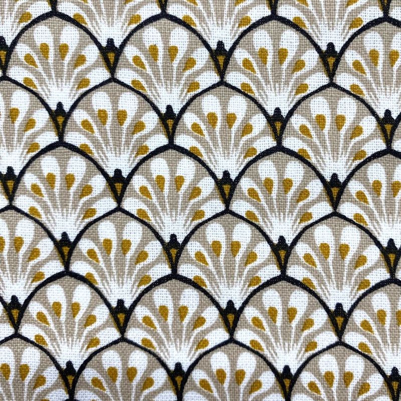 Craquez pour le nouveau tissu géométrique à motif éventail Gaudi pour vos prochaines créations de couture et cartonnage ! Il sera parfait en décoration, vêtements, et accessoires. Composition :100% coton cretonne. Disponible en 12 coloris beige, curry, rose, rouge, terracotta, olive, vert, turquoise, encre, pétrole, gris et noir.